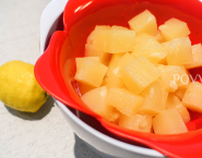 Put the batter into greased baking form, lay on top of the batter the sieved pieces of pineapple and bake in preheated oven for 30-35 minutes.