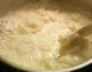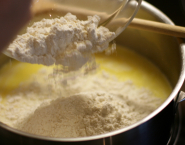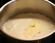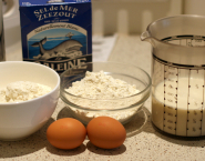 Melt the butter in the milk with a pinch of salt. Bring to a boil, add 200 g of flour and stir constantly until the dough separates from the pot and spoon. Allow to cool. Put it in the bowl add the eggs and mix well together to form a firm dough.