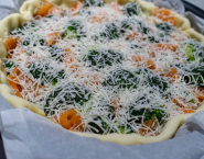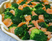 Line the baking pan with the pastry. Coat the bottom of the dough with Philadelfia cheese. Divide the broccoli and smoked salmon over the cheese. Sprinkle now tablespoon pink pepper. Sprinkle with the grated Gruyère cheese. Mix the cream with the eggs, season with salt and pepper and pour the mixture over the quiche now. Put it in the oven and bake for about 25-30 minutes.