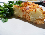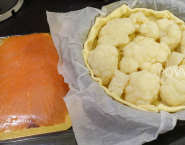 Put the cauliflower, pieces of salmon, sprinkle with grated cheese and pour over with the egg mixture. Cook for 20-25 minutes in the oven.
