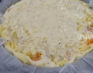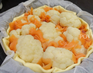 Clean the cauliflower, cut into florets, steam or cook and let cool down. Mix the cream and the egg and season with salt, pepper and nutmeg.