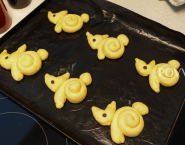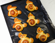 After the rise, divide the dough into equal pieces and shape each bunny. Put them on a baking sheet lined with parchment paper or bakfolie pressure and a drop of chocolate as an eye.