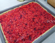 Remove the dough from the refrigerator and divide it in half. Roll the first half thickness of 4 mm and put it into baking dish. Cover it with the mixture of apples with cranberries and cover with second half of dough. Prick the top with a fork. Brush the dough with beaten egg (optional) and bake the cake in preheated oven at 180°C (convection ovens -20°C) between 15-20 minutes or until red.