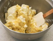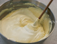 Now, prepare the cream: mix vanilla cream with mascarpone. Then add the half soft beaten whipped cream and mix together. No sugar is not necessary either into a mascarpone cream or a whipped cream.