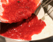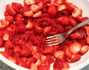 Whisk the crème fraîche until stiff, then fold in the yogurt. Set 2 strawberries and 9 raspberries aside and roughly chop the rest. Tip the chopped berries, mint and ginger into a bowl (we don’t like ginger so I used the zest of lime). Sprinkle with a little icing sugar and use a wooden spoon to mash to a rough purée. Gently fold the berries into the yogurt mix, adding icing sugar to taste.