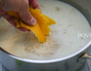 Meanwhile prepare the filling : boil the milk with almonds and zest of an orange.