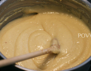 In a bowl, beat the egg yolks with the sugar until the mixture whitens. Add cornstarch and flour and mix well to have no lumps. Pour the boiling almond milk on the preparation, while stirring. Repay the preparation in the pan and cook over low heat until the cream thickens. Cool the cream down.