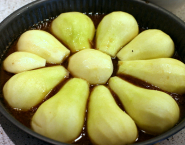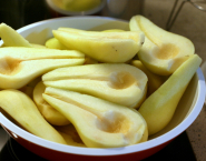 - 10 pears, peeled, trimmed and cut into 4 pieces
