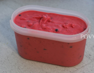 Doe het ijs dan in de pot, sluit dicht en vries of geniet van onmiddellijk.