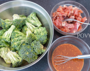 Voeg in een kleine kom samen sojasaus, honing, knoflook, bloem en azijn tot glad. Opzij zetten. Verhit 2 eetlepels olie in een grote wok tot het glinstert. Voeg de broccoli toe en soteer 3 minuten, roer vaak. Verwijder de broccoli nu uit de pan.