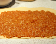 Bereid gist en bloem, melk vet, zout en suiker, bereiden we matig stijf deeg dat een half uur rijzen.