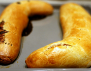 Verdeel daarna het deeg in 2 stukken en rol elk van tot rechthoek. Bestrijk het deeg gelijkmatig met gewenste vulling (bij kaneel kunnen ook rozijnen bij) en wikkel tot een rol. Zet de wikkelkoek op het bakblad en laat nog 20 minuten narijzen. Borstel hem dan met losgeklopt ei, prik enkele keer van boven met een vork en bak 30 minuten op 150°C. De koek moet na het bakken liefst niet te donker maar licht zijn – licht gebakken is wel soepeler.