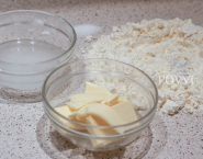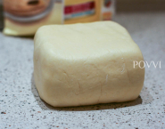 Put the flour in a circle on a worksheet. Sprinkle salt on the outside of the flower. Pour the water in the middle and do the even 200 grams of butter. Combine all this with the flour slowly until a homogeneous dough. The flour is soft as pudding powder so get ready that to work with it might be a little bit more difficult, but absolutely not impossible. Let the dough rest for 20 minutes under plastic.