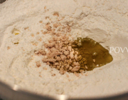 Meng de droge ingrediënten met een klopper. Voeg bij de resterende ingrediënten en maak van een losse deeg. Indien nodig, mag jij het water of de bloem toevoegen. Laat het deeg rijzen bij de kamertemperatuur cca 30-45 minuten. Klaar. Nu kan je deeg tot pizza verwerken.