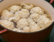 Verwarm de ovengrill voor. Verdeel de bloemkool in roosjes en kook ze beetgaar. Schil aardappelen, snijd in kleine blokjes en kook beetgaar in gezouten water. Laat uitlekken.
