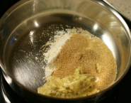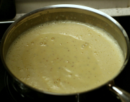 Meng in een kom de bloem, suiker en mosterd goed door elkaar. Klop de melk en de eierdooiers in een pannetje en klop er dan het suikermengsel door. Roer er de azijn onder en breng onder voortdurend roeren op een middelhoog vuur aan de kook. Zet het vuur lager, proef en voeg eventueel nog wat suiker of mosterd toe. Blijf kloppen en laat sudderen tot de saus verdikt.