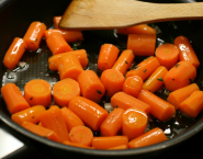 Schil de wortelen. Fruit de resterende sjalotten met een takje tijm. Voeg er de gesneden wortelen aan toe. Stoof tot de wortelen beetgaar zijn. Kruid met peper en zout en extra tijm.