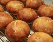 Verwarm ondertussen de oven voor op 180°C. Plaats de bakvorm op de onderste rek van de voorverwarmde oven en bak tot ze licht goudbruin, en de binnenkant van de broodjes ongeveer 85°C warm is (ongeveer 20 minuten).