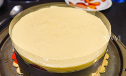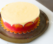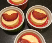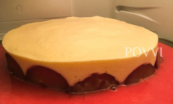 Maar wat een schok wachtte mij in de morgen. In plaats van de taart heb ik in de koelkast een soort van gesmolten pruimen-sneeuwman gevonden. Wat is er gebeurd? Zoals ik in een andere recept heb vermeld, bevatten enkele vruchten zo een soort enzymes die voorkomen dat de gelatine in de coulis van deze vruchten stolt als je ze voordien niet opkookt. Dus tot dan is elke voorbereiding van een gelatine crème met zulke vruchten bijna onmogelijk. Mango en kiwi, bvb. horen tussen zulke vruchten. Maar na deze ervaring kan ik zeggen: hetzelfde geldt ook voor vruchten die gekruist zijn. En deze pruimen dus ook want zoals ik later kwam te weten zijn deze pruimen dus ook een kruising. In praktijk betekent dat dat de enzymes in zulke vruchten ook veranderd zijn wat het process van ze in een crème wel zal beïnvloeden. Wat kan men hier doen? De hoeveelheid van suiker en gelatine te verhogen. Daarom is ook het recept voor deze taart aangepast zodat het bij jou niet zal gebeuren.