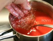 Želatínu namáčaj v studenej vode. Umyté a odstopkované jahody rozmixuj na pyré. Pyré preceď ich do menšieho hrnca, pridaj cukor, citrónovú šťavu a vodu a nechaj zohriať, až sa cukor rozpustí. Pridaj zmäknutú želatínu a dôkladne ju v jahodovom pyré rozmiešaj, až sa úplne rozpustí. Nechaj ju ochladnúť, vylej do pripravenej formy a daj stuhnúť do chladu.