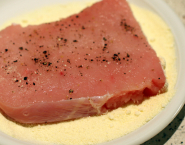 Kruid de kalfslapjes, verhit boter in een pan en bak het vlees goudbruin.