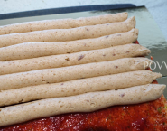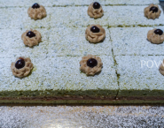 Zet de tweede helft van het deeg bovenop zodat je het papier van boven hebt. Pas nu verwijder het papier. Zo zal de opervlakte van je miserable mooi plat zijn. Doe de taart voor tenminste een uur in de koelkast om het crème te laten opstijven. Snijd ze nadien in de sneden (cca 3 × 4,5cm) groot.