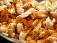 Voeg het vlees in de pan toe en kleur hem een beetje. Bestrooi hem met paprika en zout. Voeg wat water toe en stoof tot zacht. Als het nodig is, voeg nog wat water bij.