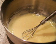 Rozpusť medzitým ďalších 6 g plátkovej želatíny v studenej vode. Vymiešaj spolu lemon curd, práš.cukor a mäkký tvaroh. Vyber želatínové plátky z vody a prihrej ich v mikrovnke počas 3 sekúnd. Primiešaj želatínu do tvarohovej masy a nakoniec pridaj dotuha vyšľahanú šľahačku. Celé to vymiešaj dohladka.