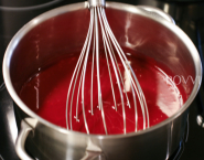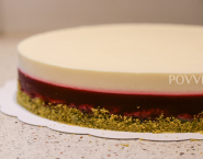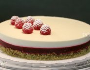 Rozpusť 3 g plátkovej želatíny v troche studenej vody. Malinovú šťavu ohrej zľahka v mikrovlnke, alebo au bain-marie. Pridaj do nej rozpustené plátky želatíny a vymiešaj do hladka. Celú zmes vylej na dacquoise vo forme na pečenie a odlož do chladničky, aby malinová zmes dobre stuhla.