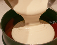 Formu pred vyberaním torty dookola zohrej fénom, aby sa od formy bez problému odlepila a ľahko z formy vybrala. Alebo pokry steny formy pred plnením rhodoïdom (plastikovou fóliou) ako ja a fén nebude potrebný.