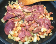 Voeg nadien de kippenlevertjes erbij en kook bij af en toe roeren, tot ze gaar zijn, maar nog steeds een beetje roos van binnen. Ongeveer 8 tot 10 minuten. Voeg de boter erbij, een paar eetlepels per keer.