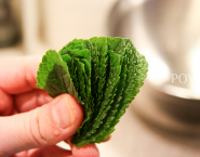 Terwijl de rijst en de aardappelen aan de kook zijn, bereid de munt; peterselie en de dille voor. Gebruik verse munt en check zodat ze niet aan het bloeien is, want de munt met bloem heeft minder aroma en alle lekkere sappen gaan naar de bloem. Je zal alleen 20 blaadjes gebruiken.