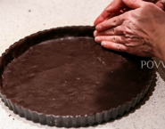 Sieve the flour for the dough, cocoa, powdered sugar and salt in a bowl and place it in a food processor. Put the butter and turn the machine on high speed for 30 seconds until the mixture resembles fine breadcrumbs. Add the egg yolks with ice water and let the machine still works for 10 seconds. The dough should begin forming large clumps. Is it not true then add 1 tablespoon ice water and leave to work short. If the clot is put the dough on floured surface and knead to a nice dough ball. Mix the dough is not too long, otherwise it will be tough. Shape the dough into a flat disk, wrap in plastic wrap and refrigerate for 30 minutes.