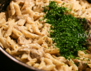 Penne met paddestoelen van het seizoen – dat kan niet anders dan licht, lekker zijn. En zonder vlees.