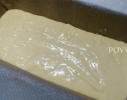 Cesto po vychladení nalej do papierom na pečenie vyloženej formy (truhlíka) a peč počas jednej hodiny. Po upečení koláč vyber z rúry, polej 1 cl rumu a nechaj 2 hodinky vychladnúť.