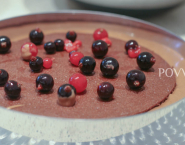 Decoreer de taart naar wens met cassis en eventueel met muntblaadjes.