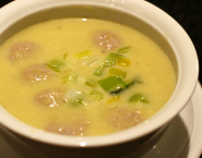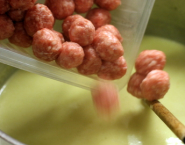 Laat alles zachtjes koken tot de patatjes zacht zijn. Mix dan de soep met een staafmixer, voeg de room erbij en meng goed. Voeg nog vleesballetjes bij en laat ze voor 5 minuten doorkoken. breng de soep op smaak met peper en zout en klaar.