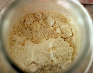 Počas ďalších dní z neho už len odoberáš a “priživuješ” ho. Ak ho necháš stáť v chladničke, stačí ho “priživovať” len raz do týždňa a to 100 ml vody a 100 g múky (viď posledné foto). Ak ho nechávaš stáť pri izbovej teplote, treba ho živiť týmto spôsobom každý deň a musí mať konzistenciu asi ako jogurt.