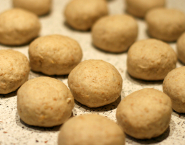 Trek stukjes van het deeg en rol ze tot bolletjes. Leg ze op vellen bakpapier die even groot zijn als bakplaten. Plet de bolletjes deeg met je handpalmen tot cirkels van ongeveer 5 mm dik. Dek af met een theedoek en laat nog 10-15 minuten rijzen op een warme plek.