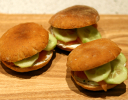 Schuif een vel bakpapier met de deegcirkels op een hete bakplaat (je bakt ze ze in porties) en bak ze 10 minuten bovenin de oven. De broodjes zullen rijzen en bruin worden. Deze broodjes souffleren tijdens het bakken en worden hol. Ideaal om te vullen.