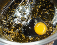 Voeg alle kruiden toe – vanille, piment, nootmuskaat en anijs. Je kunt ook kaneel, kardemom, gember, kruidnagel, muntuittreksel of je eigen mengeling van toevoegen. Klop de eieren erin, de bakpoeder opgelost in azijn en bakpoeder. Je zult merken dat het mengsel een beetje zal bruisen als het helemaal in de war raakt.