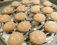 Schep ondertussen in een grote kom de poedersuiker, vanillepoeder en de melk en meng tot een glaçage. Je kunt het glazuur op smaak brengen door er een soort extract aan toe te voegen, zoals vanille, munt, amandel, enz.