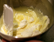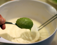 Week de 6 g bladgelatine in koud water. Meng de lemon curd en de poedersuiker met de roomkaas. Knijp de gelatineblaadjes uit en verwarm ze 3 seconden in de magnetron. Roer de gelatine door het roomkaasmengsel en schep er tot slot de slagroom door.