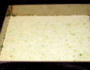 Snijd de dacquoise deeg op maat van de bakvorm.