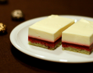 Verdeel het citroenmengsel over de frambozencoulis. Strijk het met een spatel glad. Zet de vorm minstens 3 uur in de koelkast.