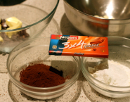Horkú čokoládu roztop spolu s maslom vo veľkej mise.