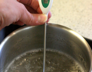 V momente, keď sirup nadobudne teplotu 120°C, vlož hrniec do studenej vody.