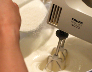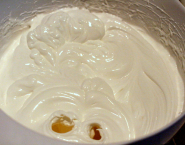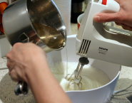 Horúci sirup prilievaj v tenkom prúde do peny a jemne šľahaj až do úplného vychladnutia.