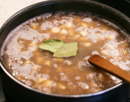 Šošovicu namoč asi 2 hodiny pred samotným varením. Daj ju variť do hrnca s vodou. Tej musí byť asi tak 2-3 cm nad šošovicu. Pridaj k nej nakrájané zemiaky, bobkový list, trochu soli a korenia a priveď do varu.