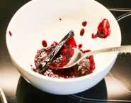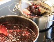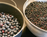 Umyté, pretriedené a odstopkované bobule bazy čiernej zmiešame s čučoriedkami a 50 ml vody a pomaly povaríme – asi 15 minút, kým sa bobule otvoria.